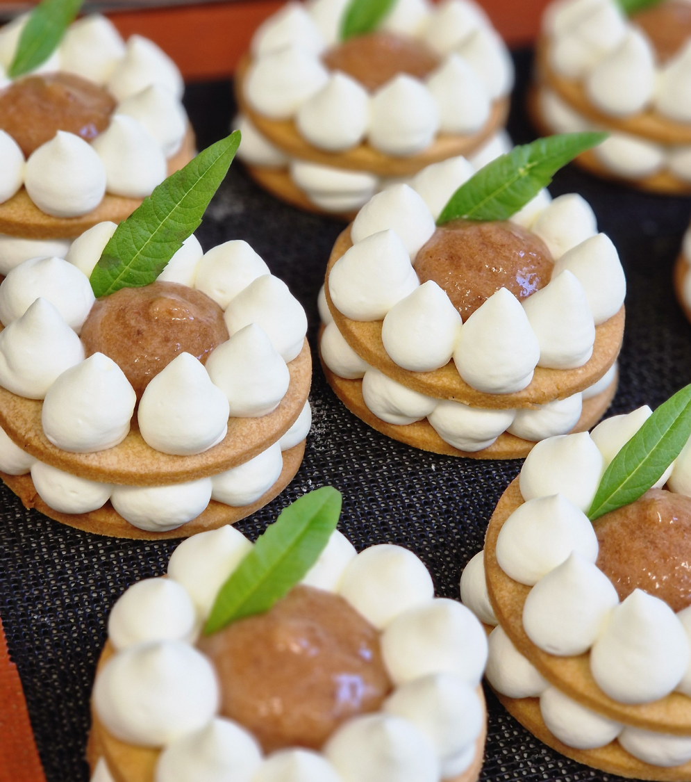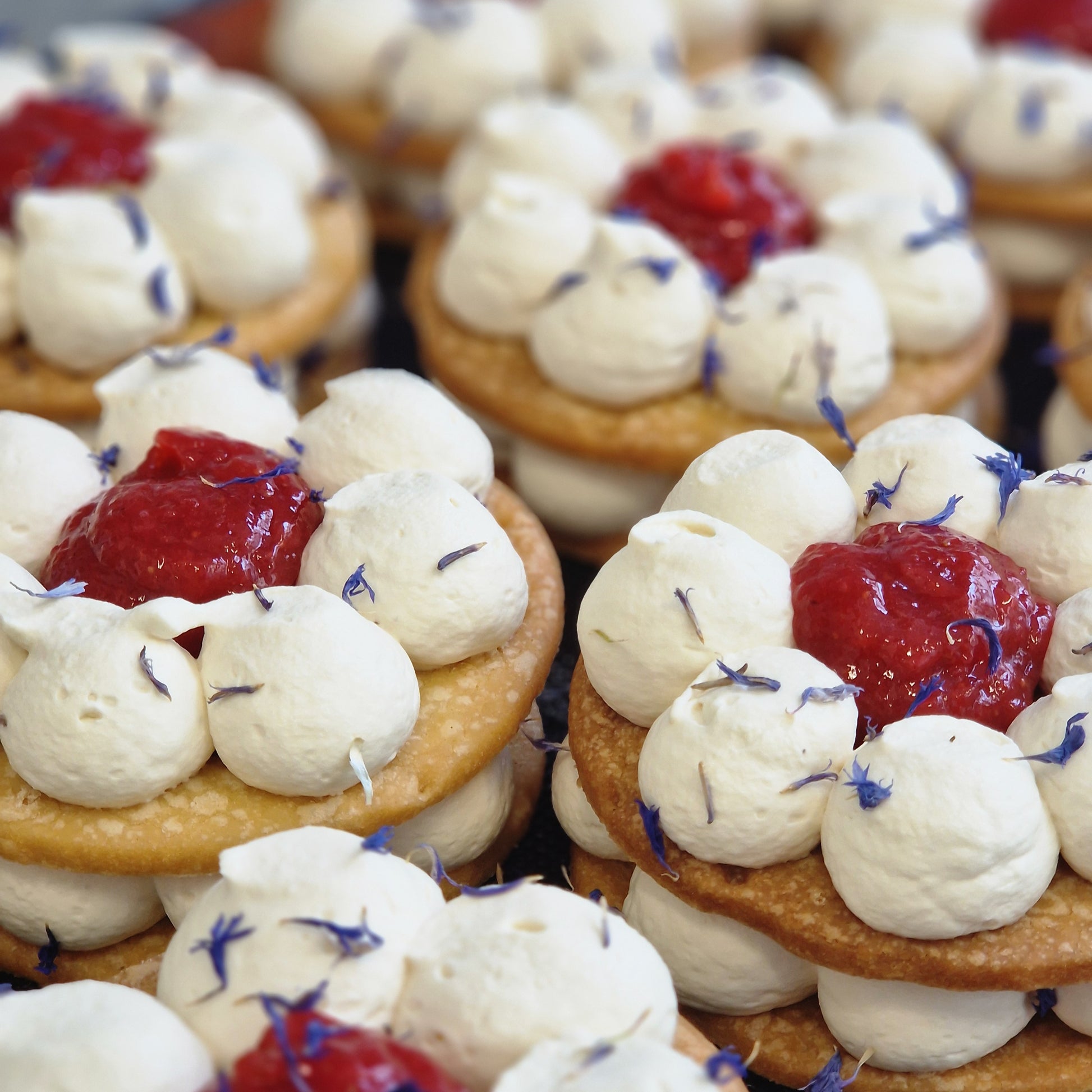 Pâte sablée vanille, compotée de fruits de saison, crème légère vanille.