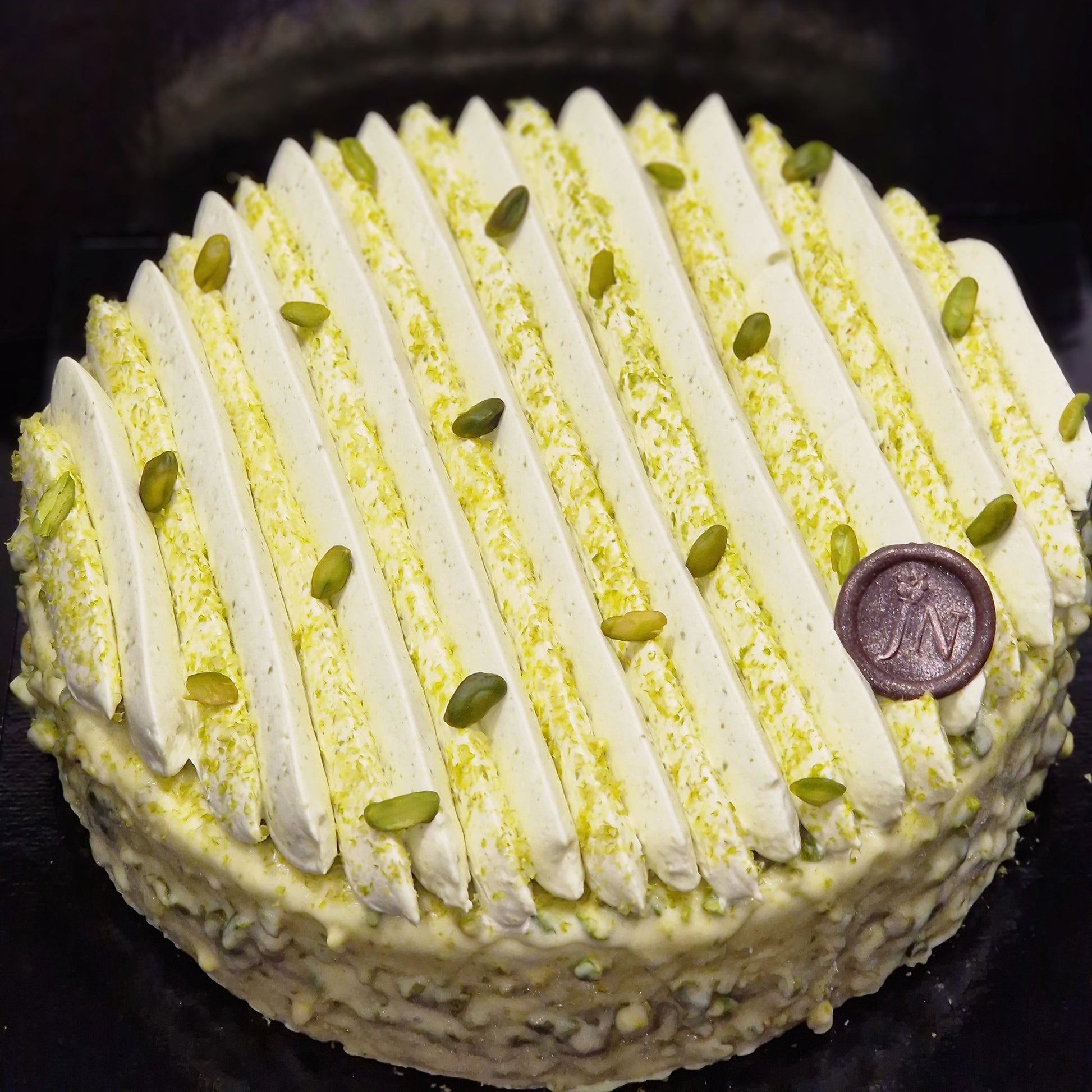 Mousse pistache, praliné pistache, crémeux pistache, biscuit pistache, croustillant pistache.